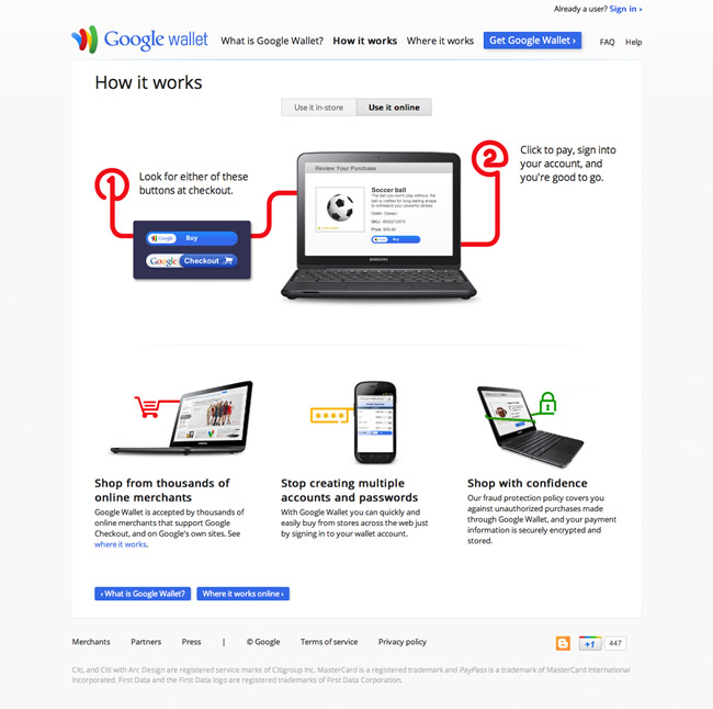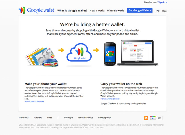 This week’s favorite website goes to Google Wallet – a fresh, simple and clean microsite / landing page. I think the designers did a great job maintaining the simplicity of Google’s brand, while making it look fresh and modern. Really nice example of an effective consumer facing landing page.